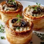 Delight in these Mini Mushroom & Gruyère Pot Pies, a cozy gourmet treat featuring sautéed mixed mushrooms infused with fresh thyme and creamy Gruyère cheese, all nestled under a flaky puff pastry crust. Perfect as individual servings for a comforting appetizer or light meal.