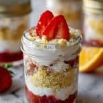 These No-Bake Strawberry Cheesecake Jars are an easy and elegant dessert featuring a buttery vanilla wafer crust, creamy cheesecake filling blended with Greek yogurt and whipped topping, and layered with fresh, juicy strawberries. Perfect for a quick sweet treat without the need for baking, they come in individual mason jars ideal for serving and storing.