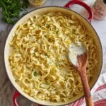 - If you prefer a thicker consistency, use slightly less chicken stock or cook the noodles a bit longer uncovered.