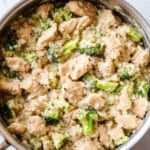 Keywords: one pot chicken and rice, chicken and rice skillet, cheesy chicken rice recipe, easy dinner, stovetop chicken recipe, healthy chicken dinner, brown rice with chicken, broccoli chicken skillet
