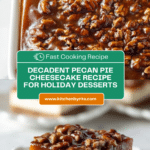 Keywords: pecan pie cheesecake, pecan cheesecake, holiday cheesecake, pecan dessert, creamy cheesecake, pecan pie topping, graham cracker crust