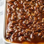- For extra flavor, toast the pecans before adding them to the crust and topping.