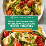 This vibrant and fresh spring pasta dish features tender cheese ravioli tossed with sautéed asparagus, juicy cherry tomatoes, and a light garlic-lemon sauce, finished with fresh herbs and Parmesan cheese. Perfect for a quick and elegant meal that bursts with seasonal flavors.