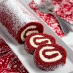 Keywords: Red Velvet Cake Roll, Red Velvet Cake, Cream Cheese Frosting, Jelly Roll Cake, Holiday Desserts