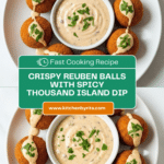 Deliciously crispy Reuben Balls filled with a savory blend of corned beef, sauerkraut, Swiss cheese, and cream cheese, served with a spicy Thousand Island dipping sauce. Perfect as an appetizer or party snack, these golden-fried bites capture the classic flavors of a Reuben sandwich in a fun, bite-sized form.