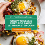 These roasted corn and fried egg tacos are a simple, flavorful breakfast or snack option that combines crispy cheese, creamy beans, and tangy pickled onions. Each bite offers a delightful mix of textures and vibrant flavors that are sure to satisfy your cravings.