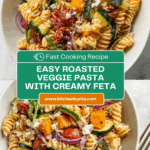 Keywords: roasted veggie pasta, baked feta pasta, Mediterranean pasta, vegetarian pasta recipe, easy weeknight dinner