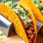 Store any leftover taco meat and cheese sauce separately in airtight containers in the refrigerator for up to 3 days. Reheat gently on the stove or in the microwave until warmed through. Taco shells are best served fresh but can be kept in an airtight container at room temperature to stay crisp.
