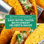 Keywords: Rotel tacos, cheesy tacos, ground beef tacos, Velveeta cheese sauce, Tex-Mex recipe, easy taco recipe