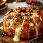 Keywords: sourdough bread, Brie cheese, cranberry sauce, baked bread, pull-apart bread, festive appetizer, savory and sweet bread