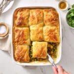 Keywords: samosa pie, ground chicken pie, Indian-inspired pie, puff pastry pie, spiced chicken pie, easy dinner pie