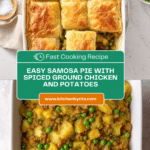 Samosa Pie is a comforting fusion dish combining the spicy, savory flavors of traditional samosa filling with a flaky puff pastry crust. Ground chicken cooked with aromatic spices, tender potatoes, and peas is baked under a golden, crisp pastry topping, creating a hearty meal perfect for family dinners or entertaining guests.