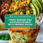 This vibrant shrimp and avocado bowl combines juicy grilled shrimp with creamy avocado and a fresh mango salsa for a burst of tropical flavor. Finished with a zesty lime-chili sauce, it’s a colorful and satisfying meal perfect for any occasion.