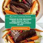 Keywords: slow-braised beef roast, cranberry balsamic glaze, beef chuck roast recipe, oven-braised beef, savory beef roast, holiday beef recipe