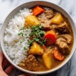 PrintSlow-Cooked Coconut Curry Beef Stew with Jasmine Rice & Naan Recipe