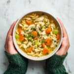 Store any leftover soup in an airtight container in the refrigerator for up to 3 days. Reheat gently on the stove or in the microwave until warmed through. The noodles may absorb broth over time, so you might want to add a splash of broth when reheating to loosen the soup.