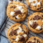 Keywords: S’mores Cookies, marshmallow cookies, graham cracker cookies, chocolate chip cookies, campfire dessert, easy cookie recipe