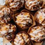 Store the muffins in an airtight container at room temperature for up to 3 days. For longer storage, freeze the muffins wrapped individually for up to 2 months. Reheat in the microwave for 20-30 seconds or until warm before serving. Add the glaze after reheating for best texture.