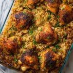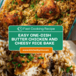 Keywords: butter chicken, baked chicken and rice, one dish meal, comfort food, easy dinner, chicken thighs, baked casserole