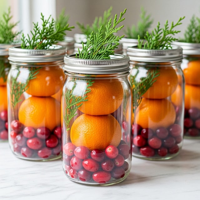 This delightful stovetop potpourri recipe creates a warm, fragrant atmosphere perfect for holiday gifting. Combining the natural scents of cranberries, cinnamon, cloves, mandarin oranges, and fresh greenery, it simmers gently on your stove to fill your home with a cozy, festive aroma. Presented in large mason jars, these aromatic blends make a thoughtful and charming gift for neighbors and loved ones during the holiday season.