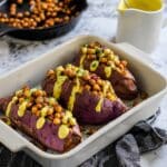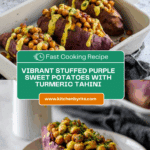 Delight in these vibrant Stuffed Purple Sweet Potatoes topped with spiced chickpeas and a creamy turmeric tahini dressing. Baked until tender and infused with bold flavors from Tandoori Masala and turmeric, this flavorful, wholesome dish offers a perfect balance of sweet, savory, and tangy notes. Ideal as a nutritious vegan meal that’s both satisfying and easy to prepare.