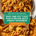 Keywords: Taco Pasta, One Pot Pasta, Easy Dinner, Ground Beef Pasta, Tex-Mex Pasta, Cheesy Pasta Recipe, Quick Weeknight Dinner