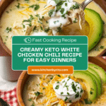 Keywords: keto chicken chili, low carb chili, creamy chicken chili, white chicken chili, keto recipes, low carb dinner, keto comfort food