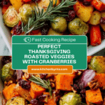 Keywords: Thanksgiving roasted vegetables, roasted carrots and potatoes, Brussels sprouts recipe, holiday side dish, oven roasted vegetables, cranberry roasted veggies, vegetarian Thanksgiving side