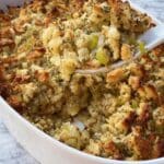 Keywords: stove top stuffing, baked stuffing, holiday stuffing, vegetable broth stuffing, savory herbs stuffing