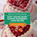 Keywords: vegan cake, heart shaped cake, raspberry cake, lemon zest cake, vegan buttercream, plant-based dessert, vegan celebration cake, dairy-free cake, pink buttercream