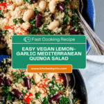 Keywords: vegan quinoa salad, lemon garlic quinoa, Mediterranean quinoa, kale quinoa salad, vegan Mediterranean recipes, healthy quinoa dish