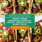 Keywords: vegan carnitas, mushroom carnitas, plant-based carnitas, king trumpet mushrooms, vegan tacos, vegan Mexican recipe