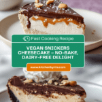 This Vegan Snickers Cheesecake is a deliciously creamy and indulgent dessert featuring a nutty oat base, a smooth cashew and coconut cheesecake layer, a rich homemade coconut caramel layer with peanuts, and a decadent chocolate topping. Perfect for those avoiding dairy or animal products, this no-bake cheesecake combines classic Snickers-inspired flavors in a healthy, vegan-friendly treat.