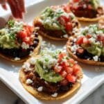 - Add Fresh Toppings: Remove the tostadas from the oven and generously top with mashed avocado, pico de gallo, crumbled feta or cotija cheese, and chopped cilantro if using.