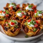- Cool and Serve: Remove the muffin tin from the oven and let the taco cups cool for about 5 minutes. Run a knife around each cup to loosen, then gently remove from the tin. Serve warm and enjoy these crispy, flavorful bites.