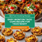 Wonton Taco Cups are a fun and delicious twist on traditional tacos, featuring seasoned ground beef and cheese layered between crispy wonton wrappers baked to golden perfection. These handheld taco cups are perfect for parties, snacks, or a playful dinner option.