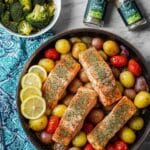 This Za’atar Garlic Salmon recipe features tender salmon fillets seasoned with aromatic za’atar spice and fresh garlic, baked alongside a vibrant medley of baby potatoes, grape tomatoes, and broccoli. Drizzled with quality extra virgin olive oil and finished with a fresh squeeze of lemon, this dish delivers a flavorful and healthy Mediterranean-inspired meal that’s perfect for any occasion.